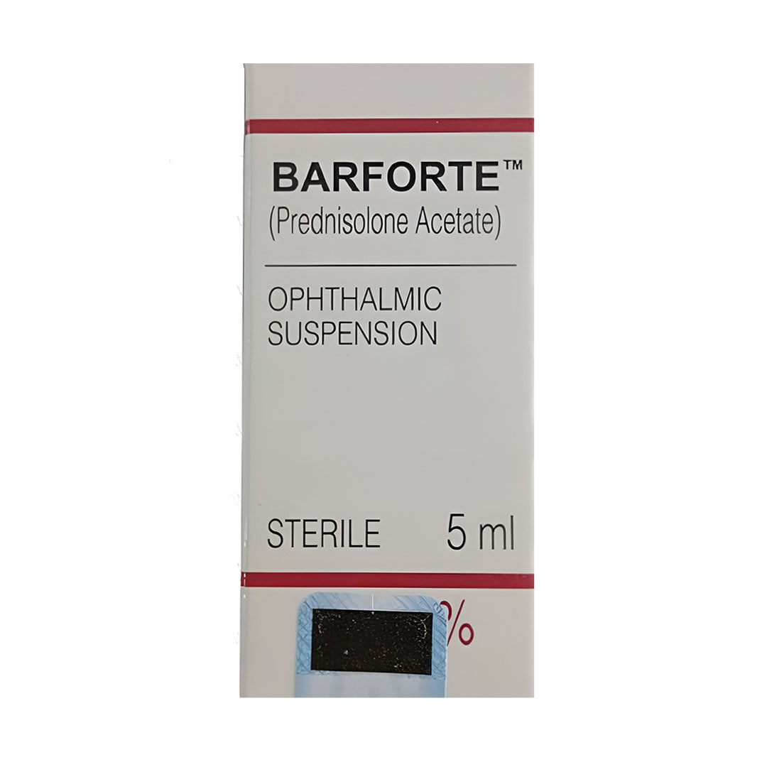 Barforte Eye Drops contain Prednisolone Acetate, a potent corticosteroid suspension used to treat severe inflammatory conditions of the eye, such as uveitis, keratitis, allergic conjunctivitis, and inflammation following ocular surgery or injury. It works by suppressing the inflammatory response, reducing pain, redness, swelling, and discomfort.