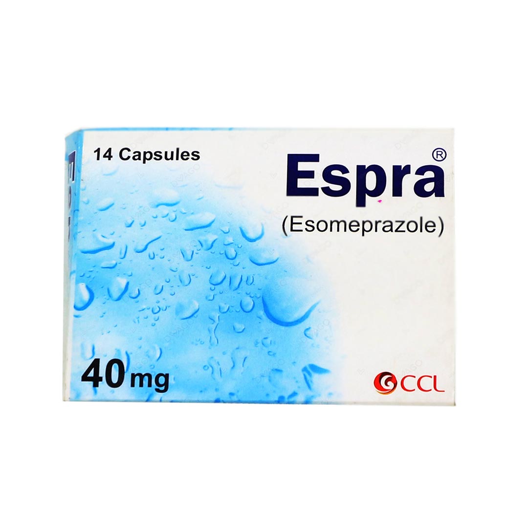 Espra Cap 40mg, containing Esomeprazole, is a pharmaceutical product with acid-suppressing properties. The main purpose of the medicine is to reduce the production of stomach acid, thereby reducing symptoms associated with conditions such as gastroesophageal reflux disease (GERD), peptic ulcers, and zollinger-ellison syndrome. By inhibiting the proton pump in the stomach lining, esomeprazole effectively reduces acid secretion, providing relief from heartburn, acid regurgitation, and other discomforts caused by excess gastric acid. The medicine helps to heal and prevent the formation of ulcers in the stomach and duodenum. Additionally, it aids in managing symptoms related to acid reflux, such as persistent cough, sore throat, and difficulty swallowing.