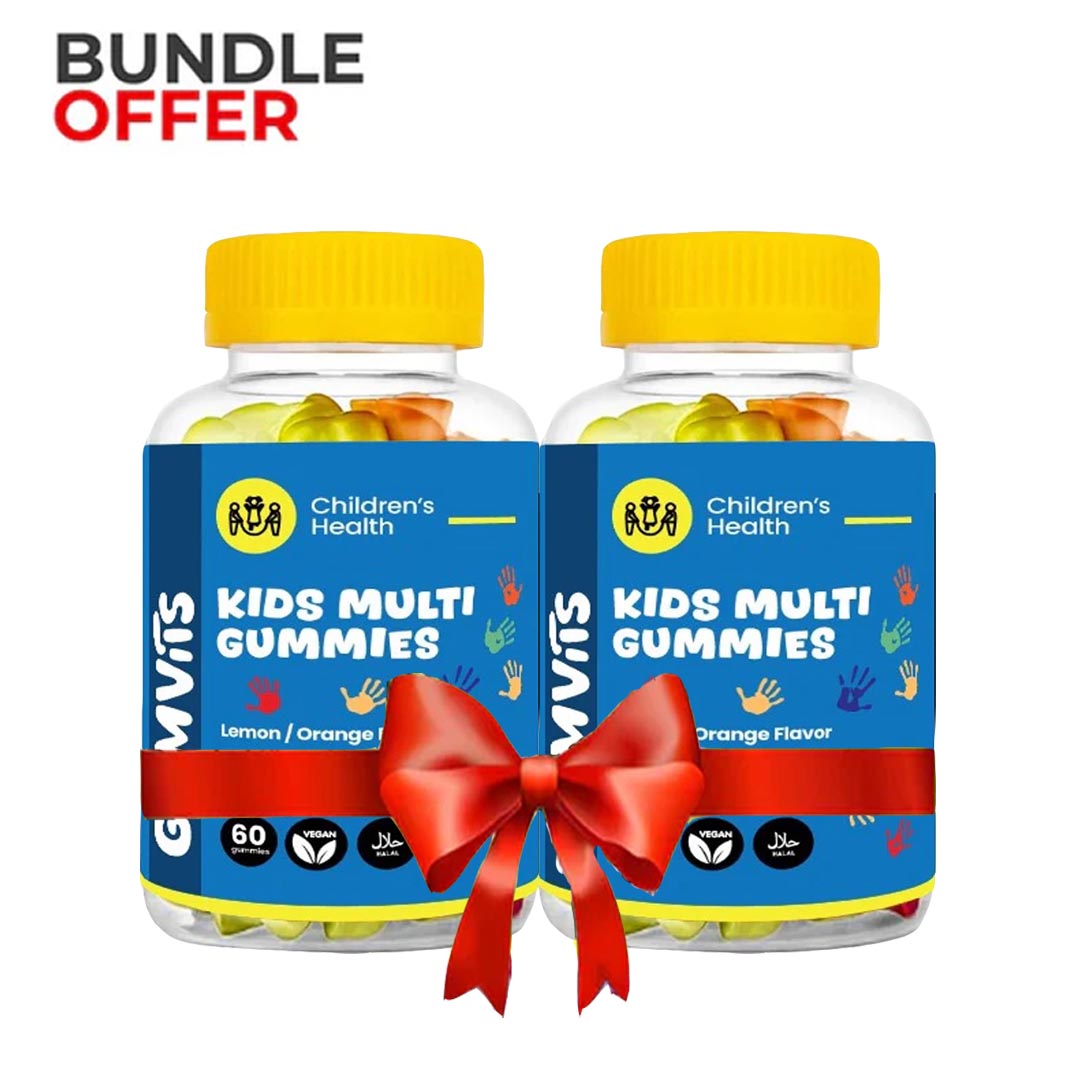 These nutrient-packed Kids Multi Gummies are made with a complete blend of daily vitamins and minerals to help kids thrive and build good health with overall fitness and wellness. It is uniquely formulized to boost up the general health and help with filling the gaps when kids' eating habits are less than perfect. These easy-to-take multi gummies are enriched with essential nutrients to help with building immunity, improving eye vision, cognitive development and making bones stronger for your child's healthy growth & development.