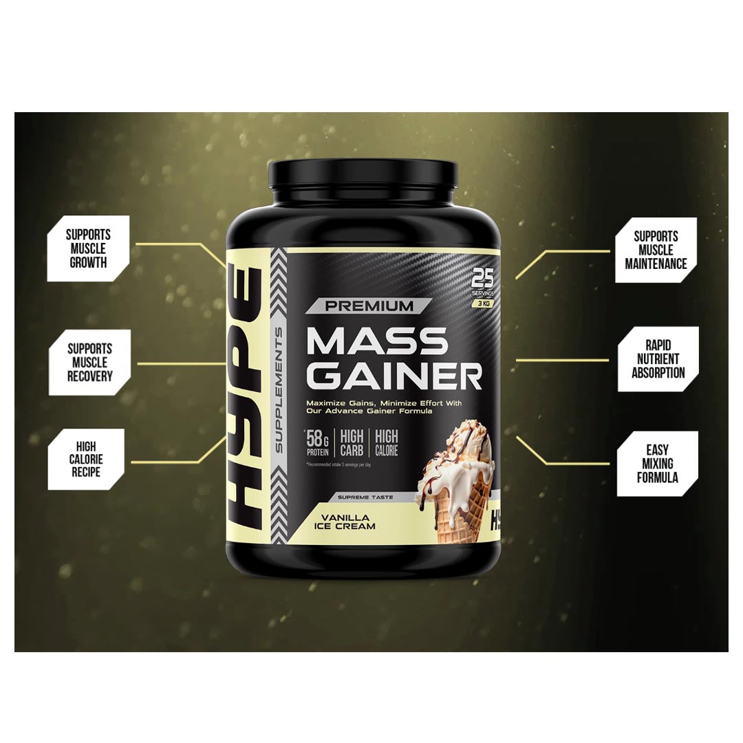 Hype Premium Mass Gainer (Vanilla Ice Cream), 3 Kg