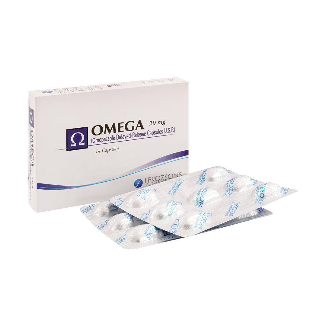 Omega capsule is used in treating heartburn and chest pain due to stomach acid reflux disease in which acidic content from the stomach comes up to food pipe and mouth. It is also used for the treatment of ulcers of the stomach, intestine and inflammation and erosion of food pipe due to stomach acid.