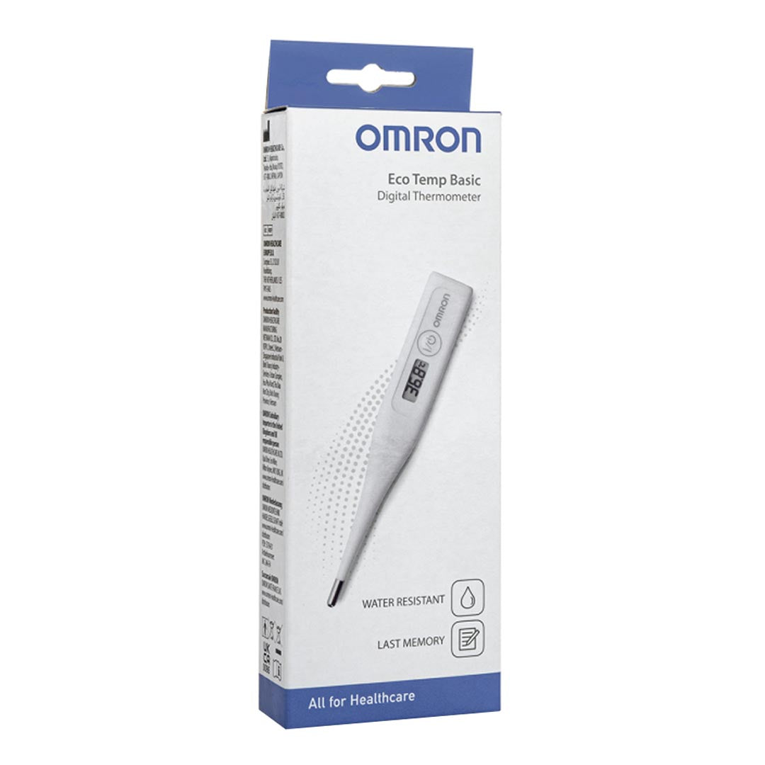 Omron Eco Temp Basic is a digital thermometer. Omron Eco Temp Basic is used to record temperatures from the mouth, armpit or rectal use. Omron Eco Temp Basic works by using heat sensors and determines the body temperature. Omron Eco Temp Basic provides accurate readings in about 1 minute or less. Omron Eco Temp Basic is especially designed and has a simple round tip that enables the patient to use the thermometer safely and conveniently during all measurement methods. Omron Eco Temp Basic is a water-resistant thermometer and is very easy to operate. Omron Eco Temp Basic belongs to the DIGITAL THERMOMETER category.